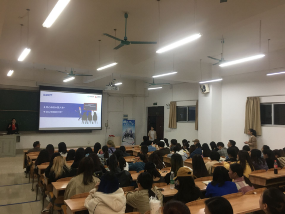 随后该公司相关负责人通过现场求职意向调查、求职问题解答等互动环节,以及在该公司工作的公司员工分享工作感受、微面试等环节,为同学们提供了一场内容丰富的求职宣讲会。