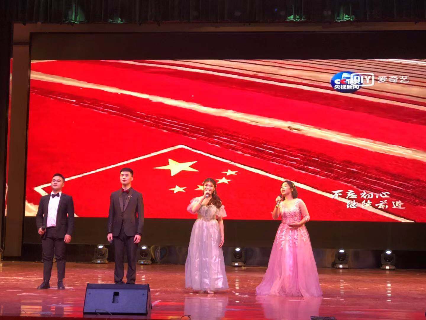 公司管弦乐团合奏《军中绿花》拉开本次成果汇报演出的序幕。随后由滕英秀独唱的《五星红旗》、男生小组唱《我爱祖国的蓝天》、林理滴、荣龙东、何瑞祯、腾英秀合唱的《不忘初心》表达了华夏子孙对祖国的热爱,对飞行的向往,更表达了无畏艰险,砥砺前行的决心。
