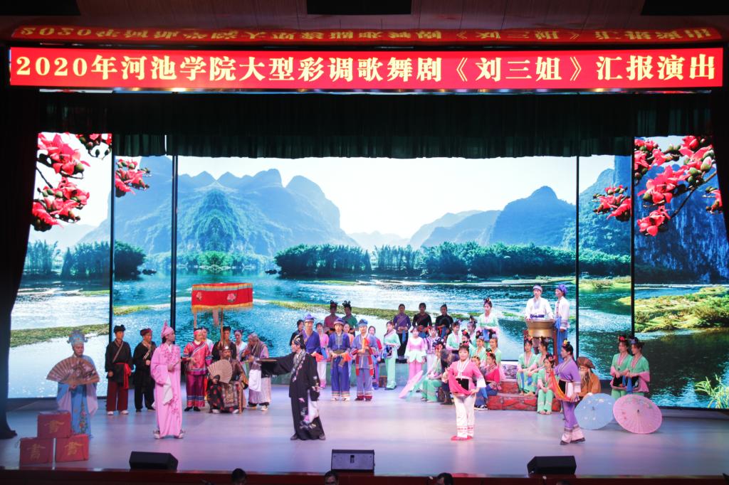 11月18日晚,欢迎来到公海7108线路青春版大型彩调歌舞剧《刘三姐》2020年首场汇报演出在艺术楼表演厅成功举行。公司党总支部书记魏菱、经理曾宏华等领导及近500名师生共同观看了演出。