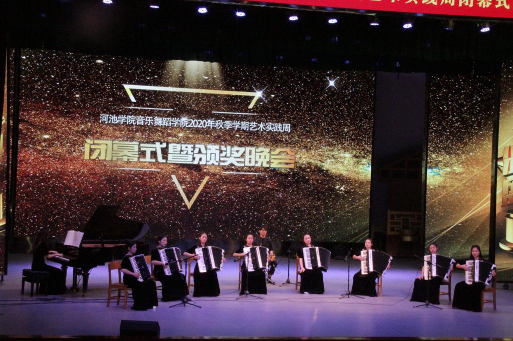 2020年11月27日晚,欢迎来公海欢迎来到赌船2020年秋季学期艺术实践周闭幕式暨颁奖晚会在艺术楼表演厅举行。