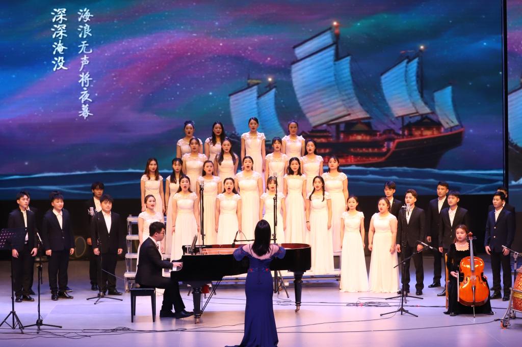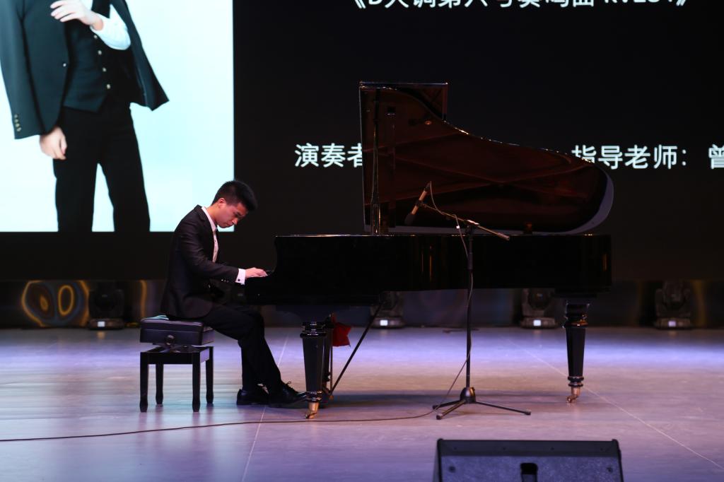音乐表演班毕业音乐会内容涵盖独唱、小组唱、二重唱、钢琴独奏、钢琴四手联弹、古筝合奏等多种音乐艺术表演形式。其中男声独唱《越人歌》、女生独唱《纳西篝火啊哩哩》展示了从古到今民歌的魅力。二重唱《世间哪有这样的情》涤荡心灵的艺术效果,使观众感同身受。钢琴四手联弹《拉德斯基》、钢琴八手联弹《温泉纪念品》跳跃的指尖弹奏出优美旋律,富有感染力,向观众彰显了独特的艺术魅力。钢琴、古筝合奏将西方乐器与中国古乐器含蓄交融,展现了“中西合璧”之美。