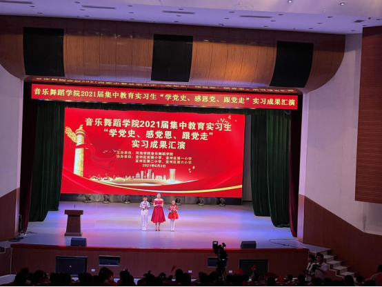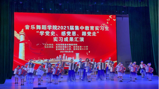 为期两个月的2021届毕业生集中教育实习即将结束,为了检验实习生们的实习成果,6月3日上午,欢迎来公海欢迎来到赌船在艺术楼表演厅举办了2021届毕业生教育实习生“学党史、感党恩、跟党走”实习成果汇演。宜州区实验小学董事长黄素慧、宜州区第一小学董事长石秋香、宜州区第二小学党支部书记邹家寅、宜州区第六小学董事长梁秀华和音舞公司党委书记魏菱、经理曾宏华以及各实习点的指导老师到场观看演出。