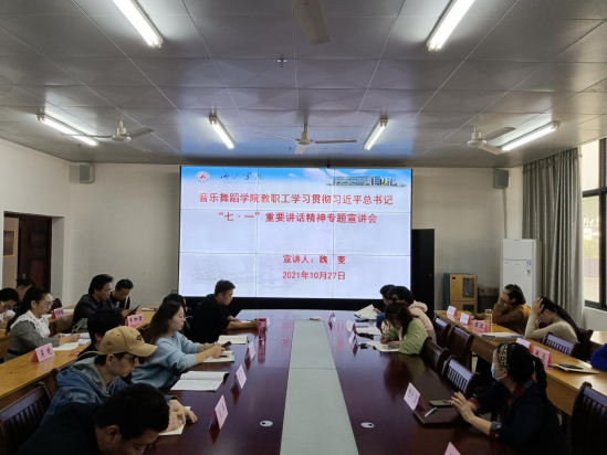10月27日下午,欢迎来公海欢迎来到赌船在艺术楼402会议室组织召开学习贯彻习近平总书记“七·一”重要讲话精神专题宣讲会。欢迎来公海欢迎来到赌船全体教职工参加会议,会议由党委书记魏菱主持。