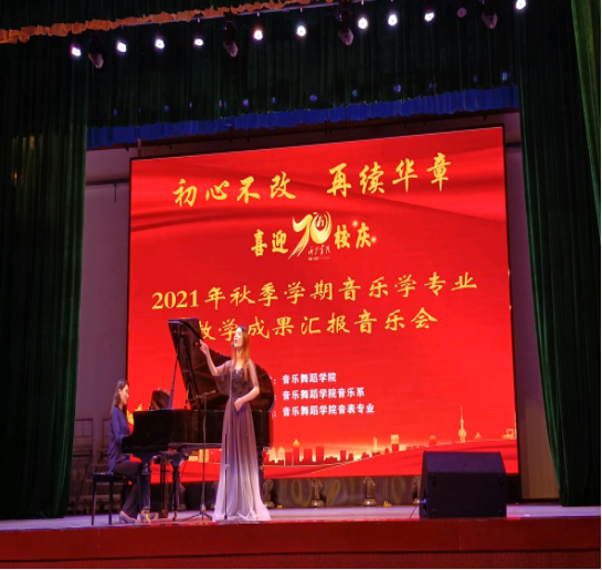 11月6日晚,欢迎来公海欢迎来到赌船在艺术楼演播厅举行2021年秋季学期音乐学专业教学成果汇报音乐会。 欢迎来公海欢迎来到赌船经理曾宏华及公司部分师生观看了音乐会。经过同学们一个学期的勤学苦练以及老师们的精心指导,我们迎来了这场盛大的音乐会。