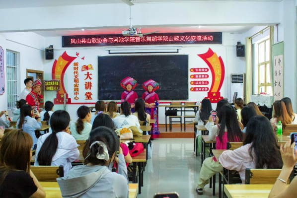 在柳州三江侗寨,师生们走进侗族鼓楼、风雨桥,观摩侗族大歌、芦笙舞、“坐妹”演出等传统艺术表演,沉浸式体验侗族人文风情;在桂林漓江畔感受“山水甲天下”的自然奇观,从喀斯特地貌的灵动线条中汲取创作灵感;在河池市凤山县,重点调研了凤山县非物质文化遗产类的舞蹈及山歌调式。在当地文化馆专家指导下,员工们系统学习了瑶族的竹绑舞等传统舞蹈的肢体语言与文化内涵,并参与山歌对唱实践,记录古老调式的旋律特点;在巴马,“梦·巴马”的演出以天地为幕、山水为景的恢宏演绎,生动呈现了瑶族祝著节、铜鼓舞等非遗文化,让员工直观感受到民族艺术与现代舞台技术的创新融合。