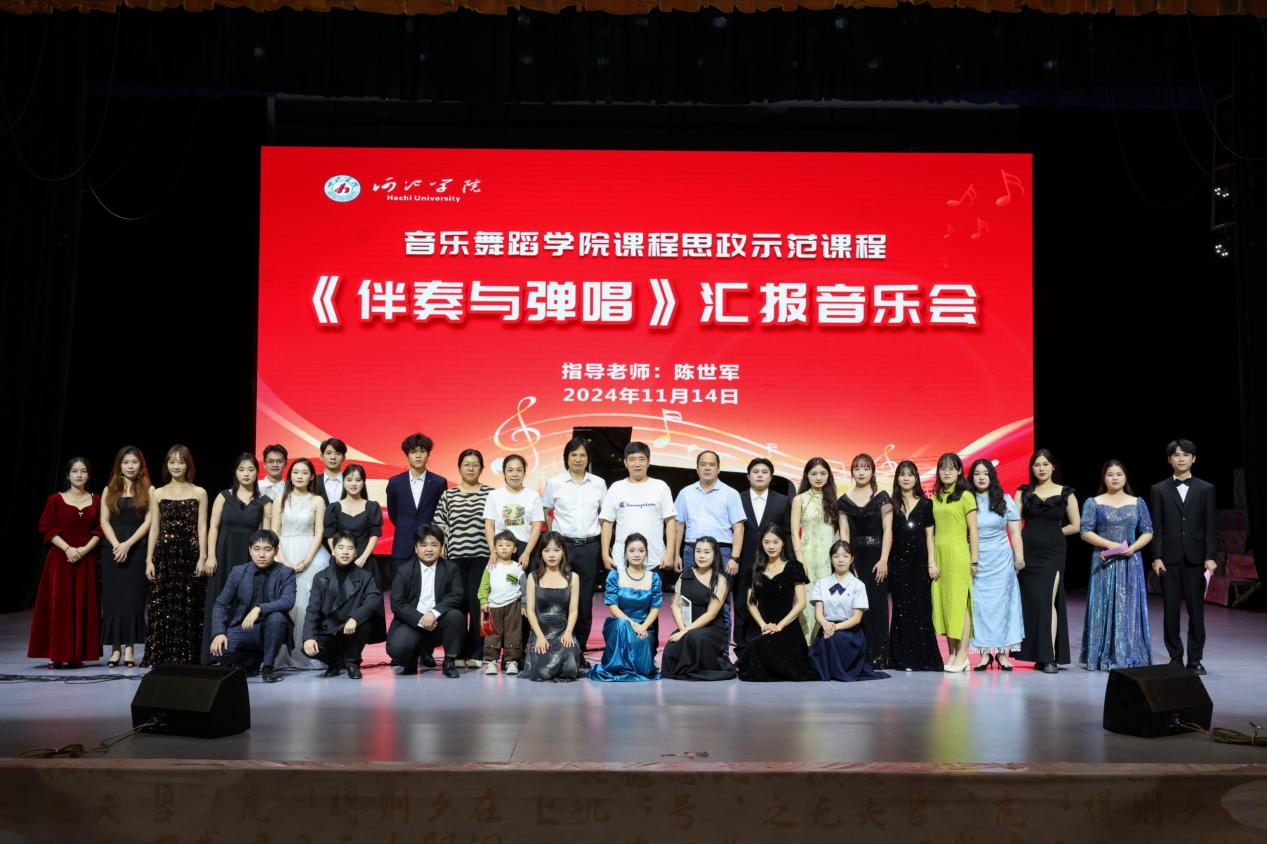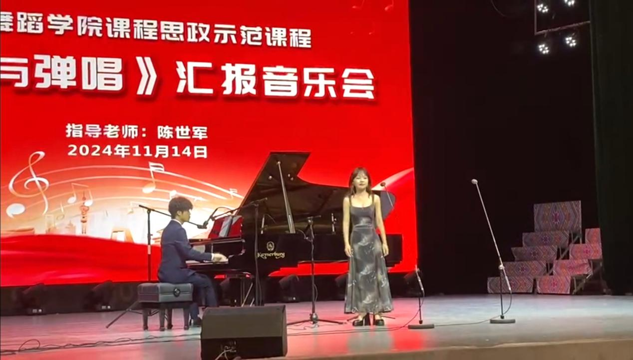 2024年11月14日晚,公司在艺术楼表演厅成功举办了课程思政示范课程《伴奏与弹唱》汇报音乐会。此次音乐会由陈世军副教授指导,公司领导及部分师生莅临现场,共同欣赏这场充满艺术与思政融合的精彩演出。