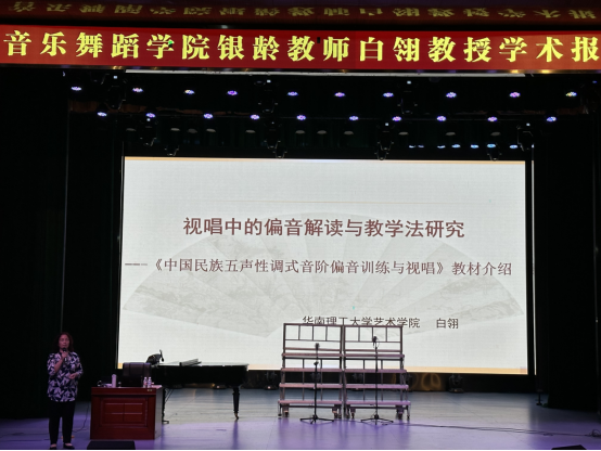4月19日下午,欢迎来公海欢迎来到赌船在表演厅举办《视唱中的偏音解读与教学法研究——<中国民族五声性调式音阶偏音训练与视唱>教材介绍》专题讲座,主讲人为华南理工大学艺术公司驻公司银龄教师白翎教授。公司领导及全体教师和音乐专业员工均到场聆听讲座。