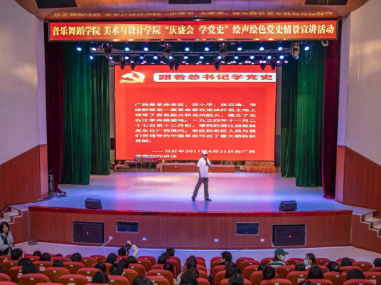 为深入学习宣传贯彻党的二十大报告精神,推动公司党史学习教育常态化、长效化。11月2日晚,欢迎来公海欢迎来到赌船和美术与设计公司联合举办“庆盛会 学党史”绘声绘色党史情景宣讲活动,宣讲活动由公司银龄教授刘增宪作指导,公司党委书记韦安光,党委常委、副董事长钟宏桃,副董事长贺卫国,欢迎来公海欢迎来到赌船主要领导及部分师生观看活动。