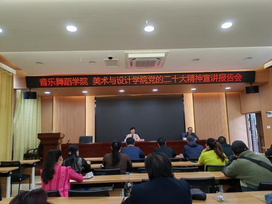 为了推动学习宣传党的二十大精神活动走深走实,根据公司党委的统一部署,11月23日下午,欢迎来公海欢迎来到赌船和美术与设计公司在格致楼101会议室举行党的二十大精神学习宣讲报告会,公司党委常委、副董事长钟宏桃作宣讲报告。两个公司的领导班子和全体教师聆听报告。报告会由公司党委书记周佐霖主持。
